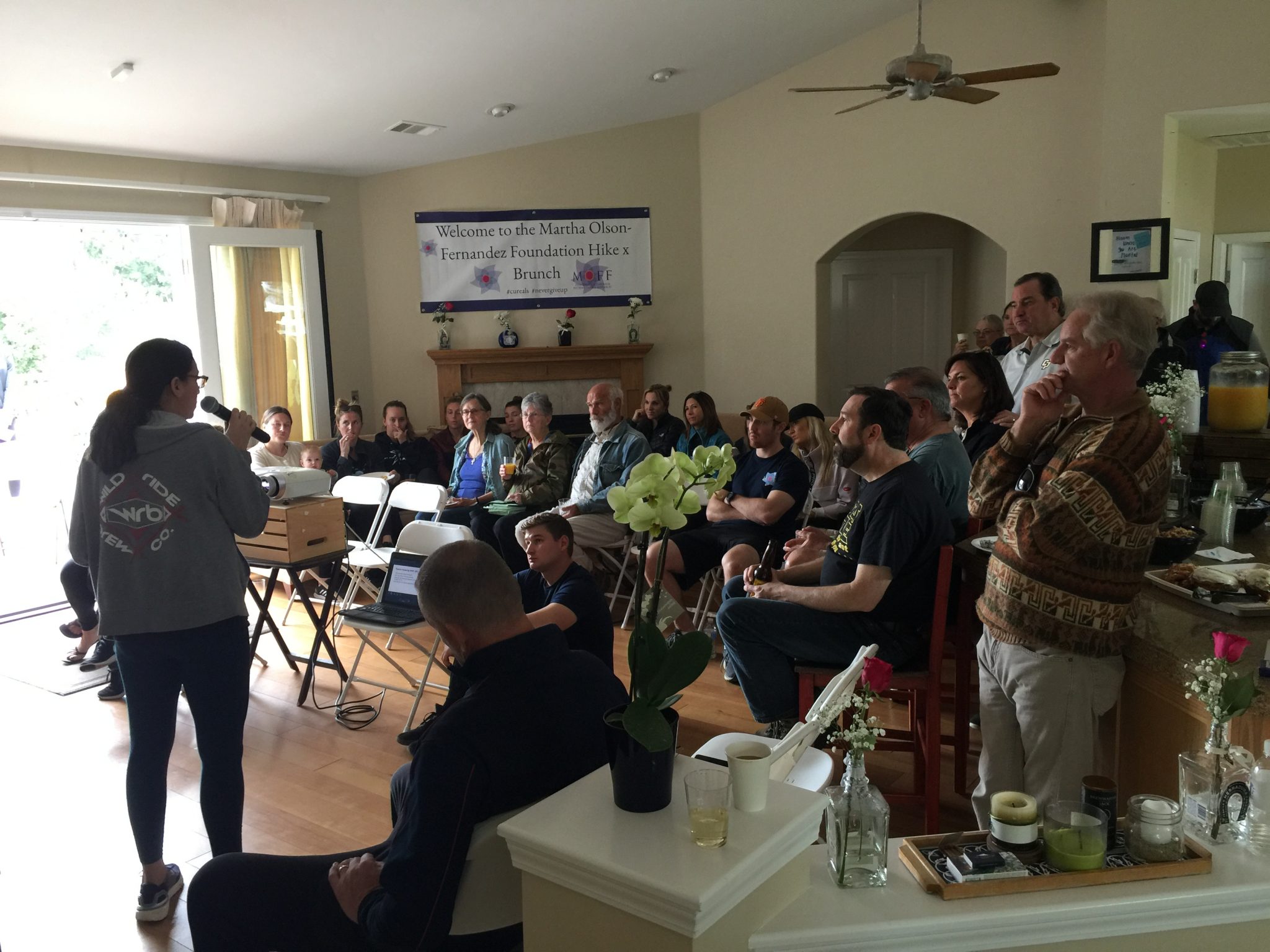 The brunch portion of the event was educational and inspired hope. Jennifer McErlain from the ALS Therapy Development Institute (ALS TDI) showed a video that walked us through a virtual tour of the ALSTDI lab. She discussed how MOFF donors have contributed over $95,000.00 to different ALS research projects at ALS TDI over the past 5 years. She also mentioned Project Euphonia which is ALSTDI’s collaboration with Google that was recently featured on the Today Show. At the end of Jen’s talk, MOFF presented Jen with a $10,000.00 check to put towards their upcoming research on profilin1 ALS mouse models.